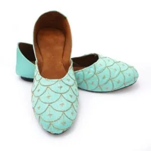 This beautiful pair of Pastel Pink juttis is something anyone would die for. Grey base and Silver upper devise astounding contrast. Everything is handicraft and custom-made. The solitary symmetric shape that molds your feet for more comfort. It has a shimmer look with an embellishment of beads